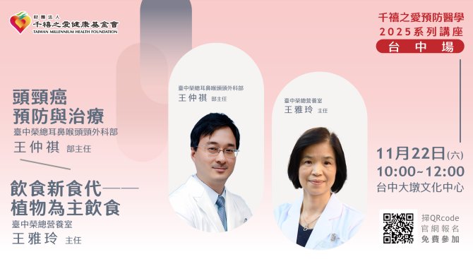 114年11月22日(六) 千禧之愛預防醫學講座 - 台中場